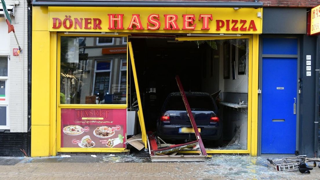 Een auto is zaterdagochtend rond 7.00 uur door de gevel van dönerzaak Hasret aan de Astraat in de stad Groningen gereden.