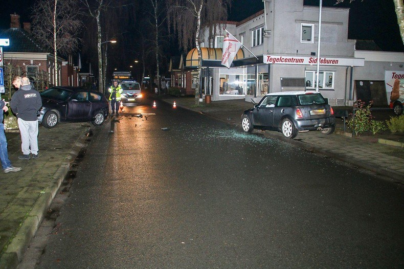 De bestuurder van de Mini raakte de macht over het stuur kwijt en botste tegen een geparkeerde auto.