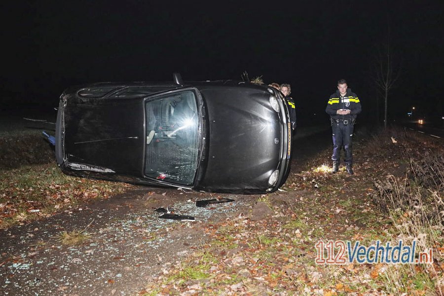 Een vrouw raakte door nog onbekende oorzaak met haar auto in de slip. Ze raakte van de weg, reed een boom omver, rolde om en kwam vervolgens met de auto op z'n kant tot stilstand. De automobiliste is door ambulancepersoneel gecontroleerd maar bleek ongedeerd te zijn. De vrouw hoefde niet mee haar het ziekenhuis.