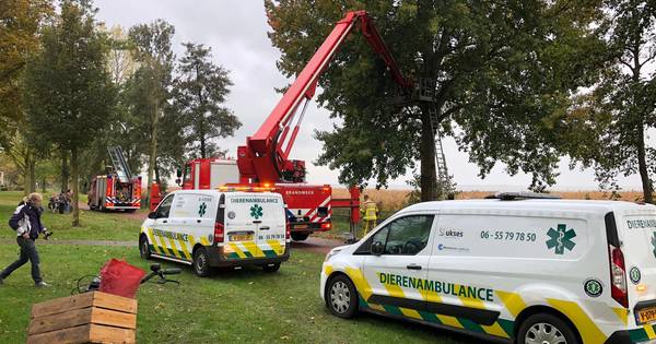 Het diertje is (uiteindelijke zelfs letterlijk) opgevangen en nagekeken door medewerkers van de dierenambulance.