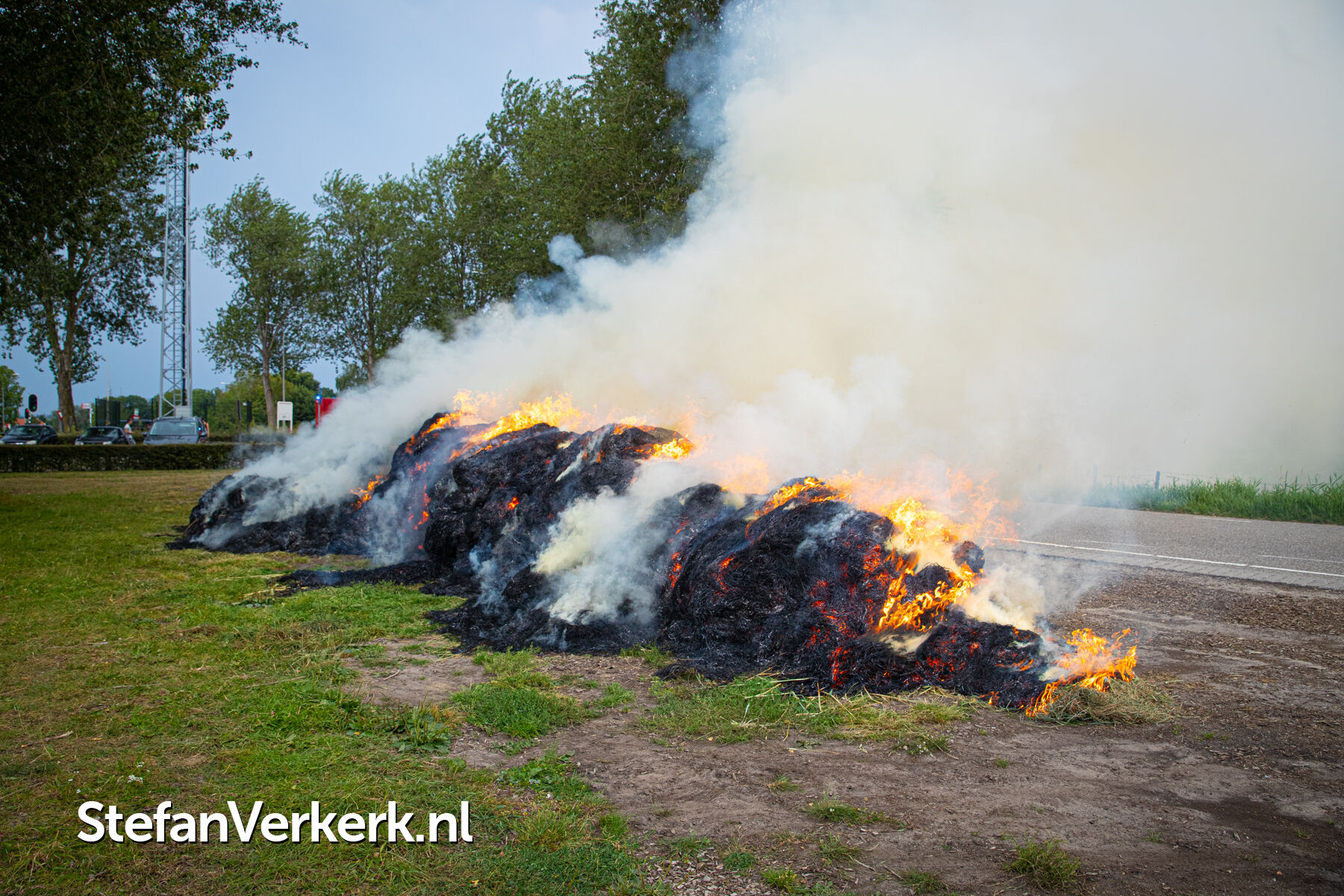 Daar aangekomen bleek dat een berg maaiafval van ongeveer 10 tot 15 meter breed in brand stond. Door nog onbekende oorzaak is de bult tot ontbranding gekomen, mogelijk is er sprake geweest van broei maar ook brandstichting zou een optie kunnen zijn. Bij aankomst van de brandweer was er sprake van forse rookontwikkeling en waren er flink wat vlammen te zien. De brandweer kon door te blussen er voor zorgen dat de rookontwikkeling iets afnam, maar om de brand volledig te kunnen doven moest de bult uit elkaar getrokken worden met een kraan. Ook de brandweer van Oldebroek werd ter assistentie gevraagd met een extra waterwagen. De brandweer is nog uren bezig geweest met (na)blussen.