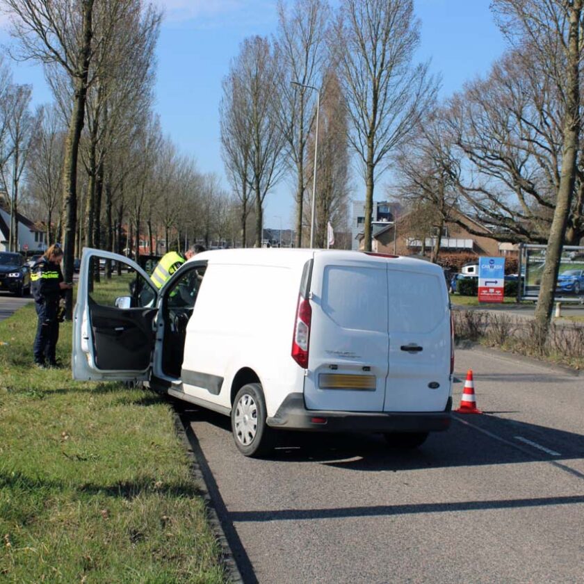 Een bestelwagen kwam in botsing met een taxi-busje, waarbij één persoon lichte verwondingen opliep. De gewonde persoon is nagekeken door een ambulancemedewerker.
