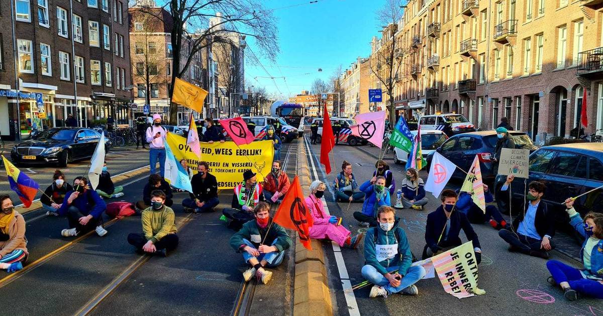 Zo’n 45 demonstranten van Extinction Rebellion zijn vrijdagochtend op de Overtoom bestuurlijk verplaatst. Ze zaten op straat en blokkeerden zo de doorgang van verkeer.