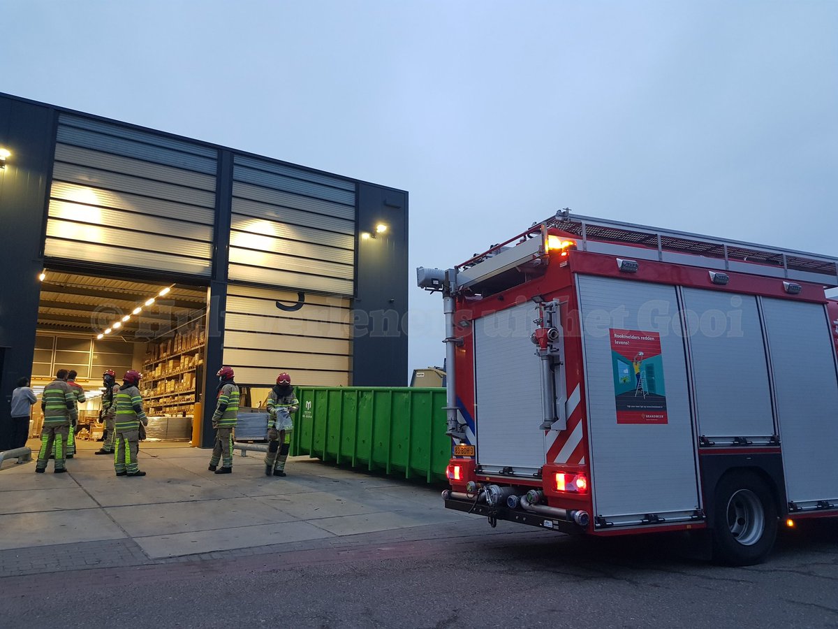 De brandweer is vanochtend opgeroepen voor rokende accu van een heftruck op bedrijventerrein Boomgaard 's-Graveland.