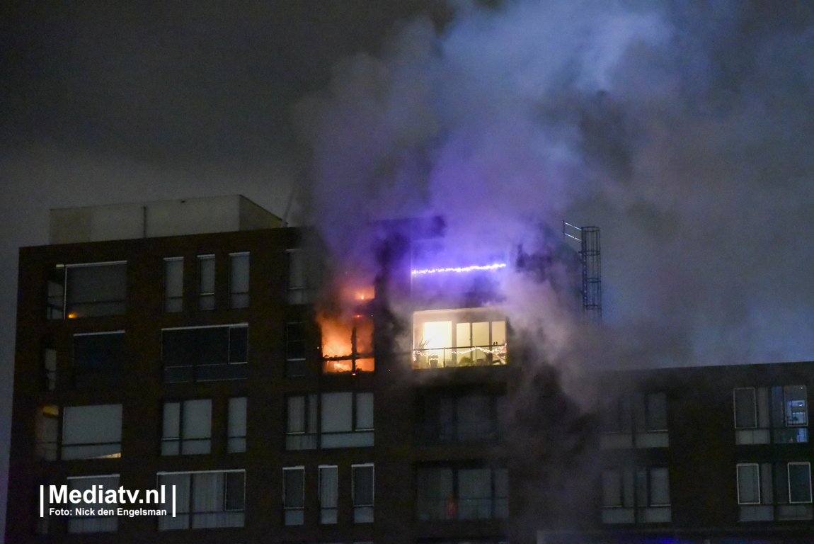 In een appartementencomplex aan de Heerlijkheid in Hendrik-Ido-Ambacht is in de nacht van maandag op dinsdag een grote brand uitgebroken.
