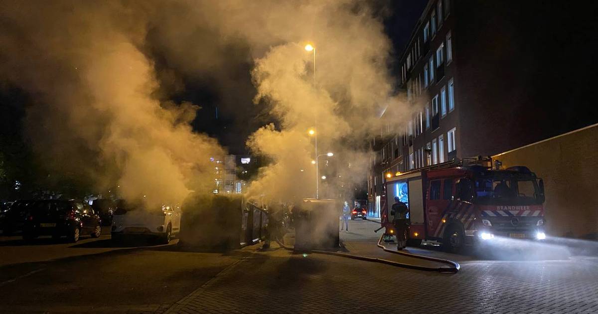 Omstanders vermoeden dat de container is aangestoken. Een auto, die naast de container stond geparkeerd, liep schade op.