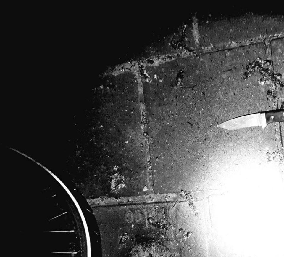 Niet veel later zagen agenten van Politie Heusden de verdachte op de Spoorlaan in Drunen terwijl hij aan een fiets stond te rommelen. De man werd aangehouden en in zijn directe omgeving werd het mes aangetroffen. Foto: Politie