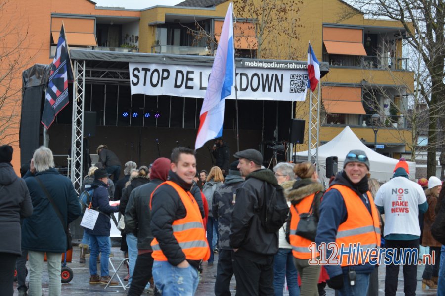 HILVERSUM - Tussen de 400 en 500 demonstranten hebben zich zondagmiddag 10 januari verzameld op het Marktplein in Hilversum om daar hun onvrede te uiten over de huidige coronamaatregelen, waaronder de lockdown.