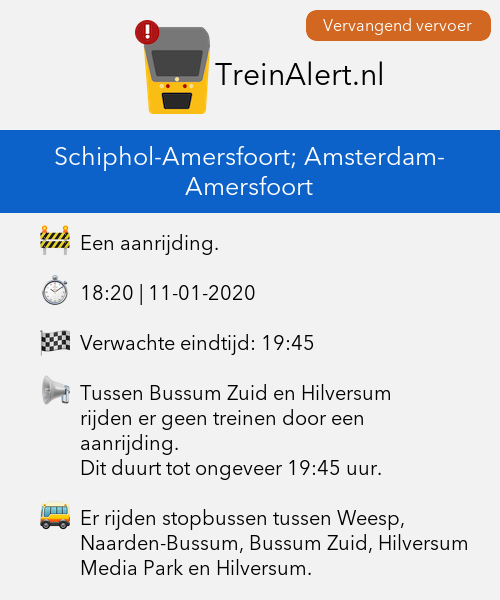 Tussen Bussum Zuid en Hilversum rijden er geen treinen door een aanrijding.