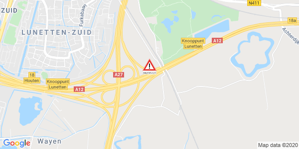 Rijbaanafsluiting: A12 verbindingsweg A12 vanuit Arnhem / A27 richting Hilversum.