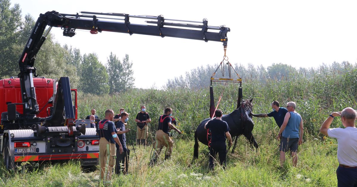 In de Molenbeekstraat in Denderleeuw heeft de brandweer een 13-jarige merrie na ruim drie uur kunnen bevrijden uit een diepe gracht.