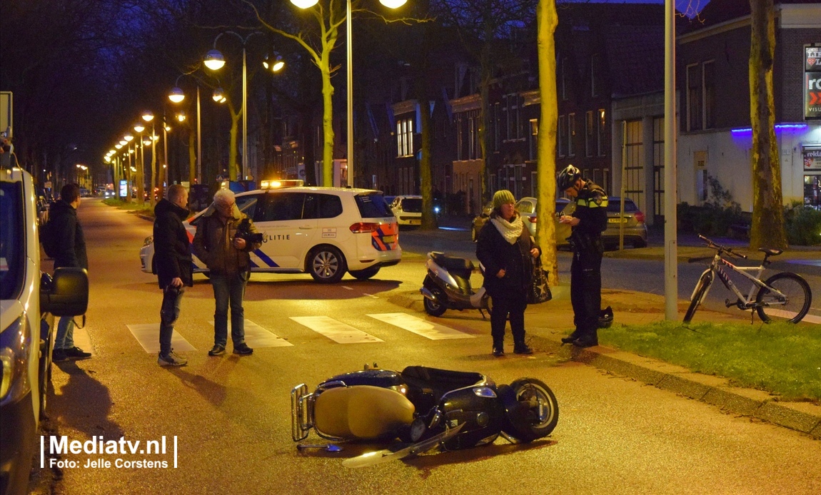 Op de Langegracht in Leiden is een scooterrijder gewond geraakt bij een ongeval.