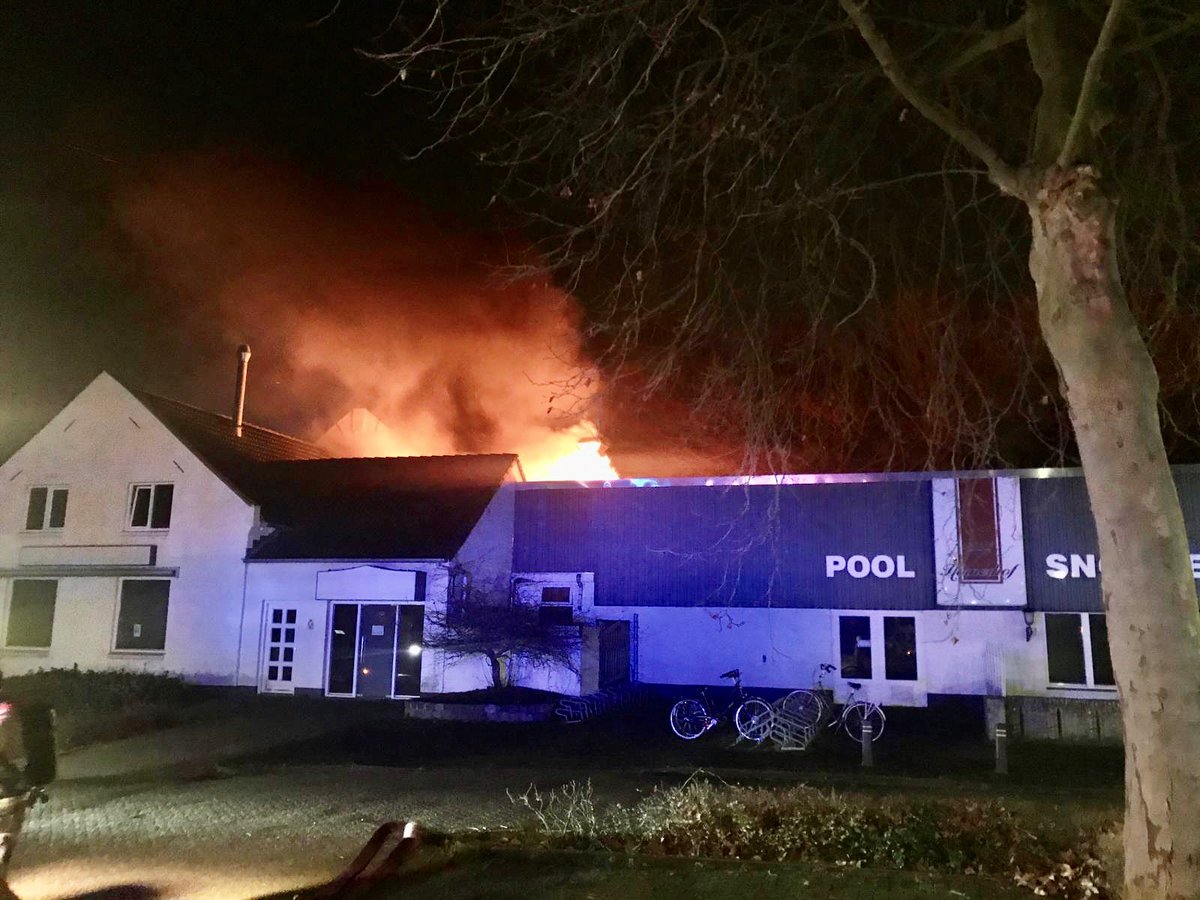 Het vuur brak iets na 4:30 uur uit in Hornerhof aan de Rijksweg. In het gebouw zijn ook een sporthal en snookercentrum gevestigd.