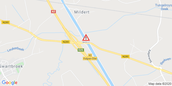 wegstatus: Weg afgesloten: N280 bebouwde kom Weert <> afrit A2: Kelpen-Oler / A2. Ongeval(len)...