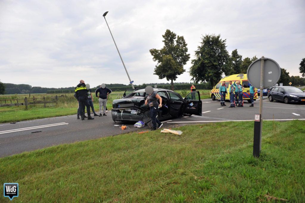 Op de t-splitsing Nijken / Strubben waren twee personenauto’s tegen elkaar gebotst. Vermoedelijk wilde de groene Audi afslaan en had de bestuurder van de donkere Volvo daarachter dat te laat opgemerkt. Door de klap was de Volvo tegen een lantaarnpaal tot stilstand gekomen. De lantaarnpaal kwam scheef te staan.
