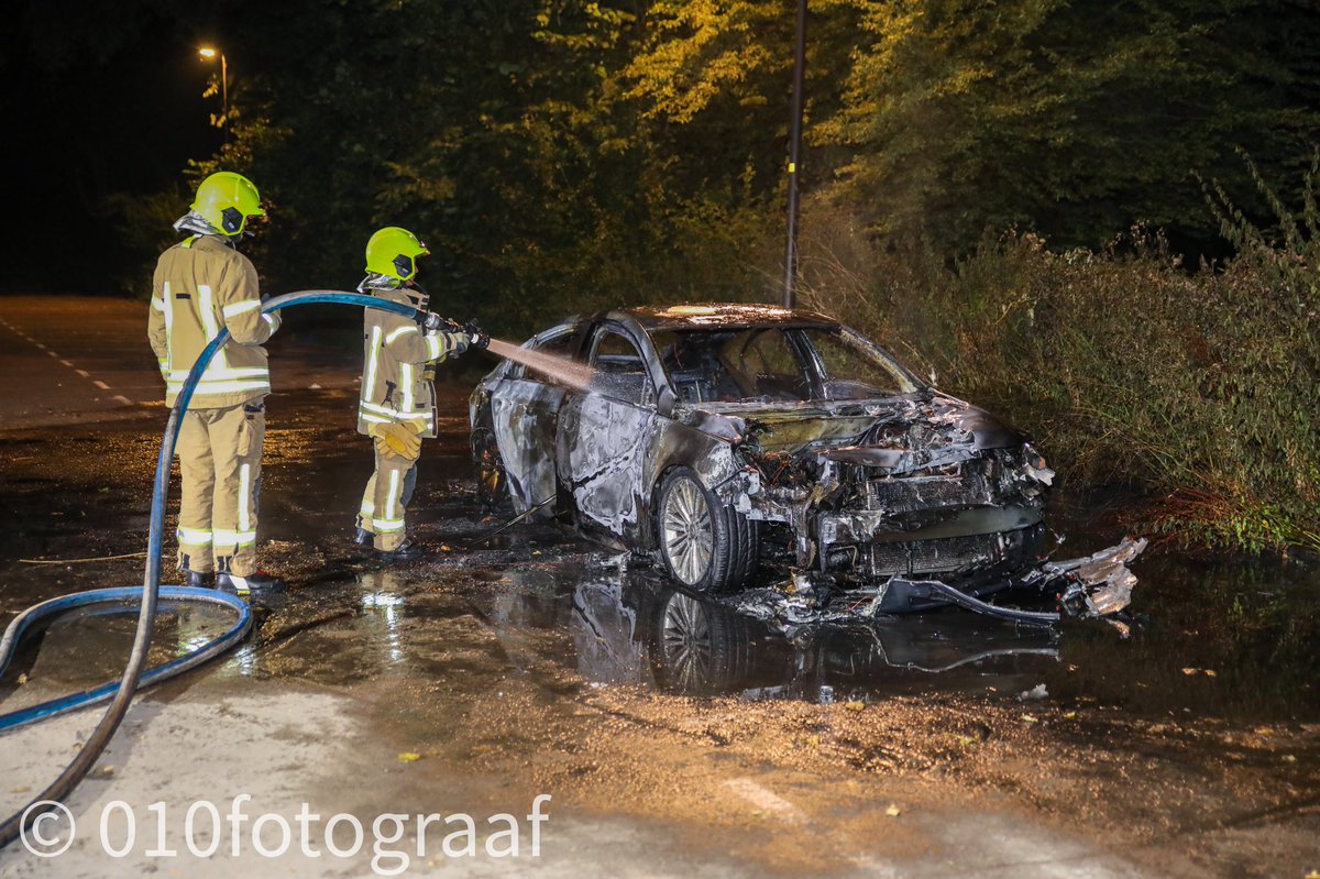 Een personenauto is omstreeks uur afgelopen nacht in vlammen opgegaan aan de Sportlaan in Maassluis.