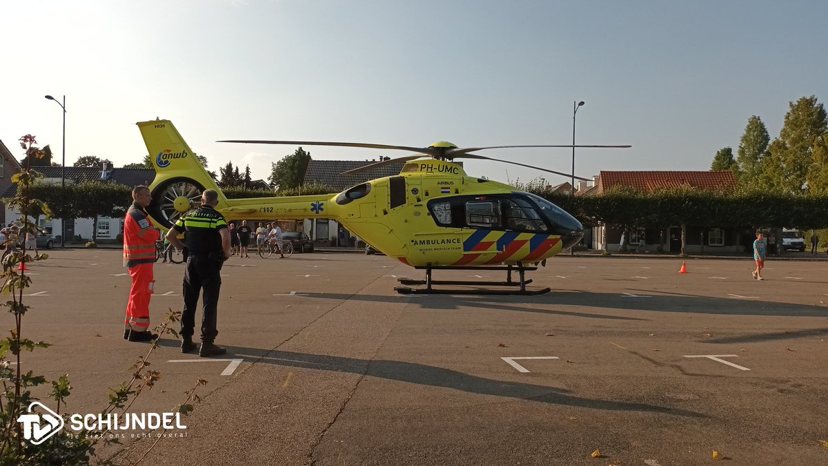 Meerdere ambulances, politie en de traumaheli werden opgeroepen. Heli staat op parkeerterrein aan de Steeg. Later meer op. #schijndel #tvschijndel #meierijstad.