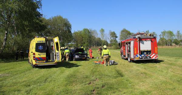 Het voertuig kwam tot stilstand in een weiland. Tenminste één inzittende is met spoed naar het ziekenhuis gebracht.