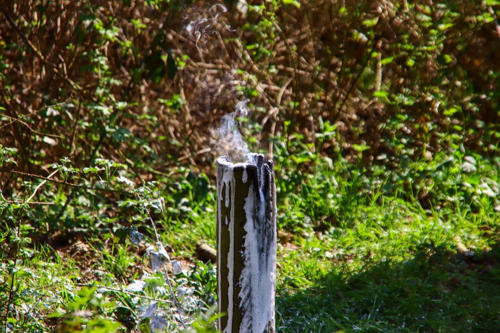 Bij aankomst bleek er een houten paaltje in een bosrijke omgeving in brand te staan. Met een brandblusser heeft de brandweer schuim over het paaltje heen gespoten en daarna keerde men weer terug naar de kazerne.