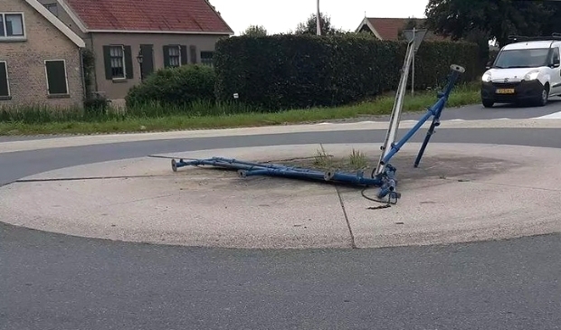 GOUDRIAAN • Een automobilist reed vrijdagochtend met volle snelheid rechtdoor op de rotonde in de Gorissenweg in Goudriaan en vernielde daarbij de bebording op het kruispunt.