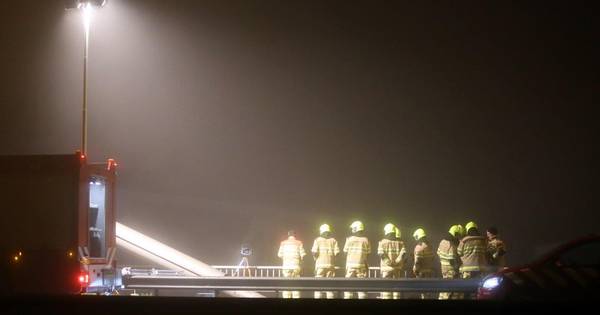 ,,In de tanker zit een gevaarlijke stof (kaliumhydroxine, red.). Die moet worden overgepompt in een ander schip. De tanker ligt nu stabiel onder de Martinus Nijhoffbrug van de A2. Dat kan geen kwaad. Later op de dag wordt de lading eruit gepompt. ProRail onderzoekt de schade aan de pijler. Het scheepsvaartverkeer ligt plat.”