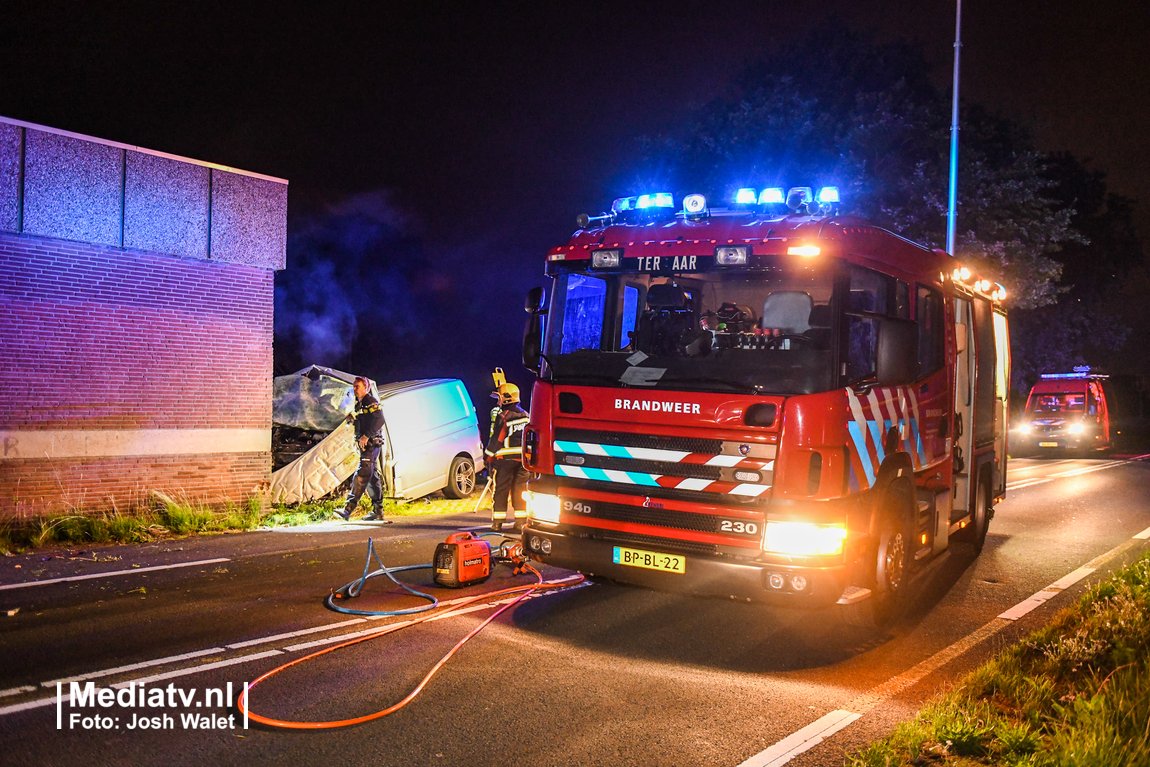 Een bestelbusje klapte door nog onbekende oorzaak op een gebouw van het waterschap.