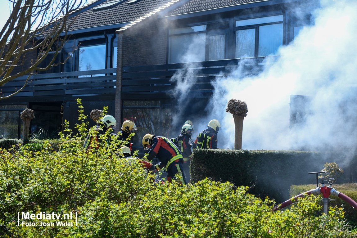 Op de Bachstraat in Nieuwkoop is een woningbrand opgeschaald naar middelbrand.