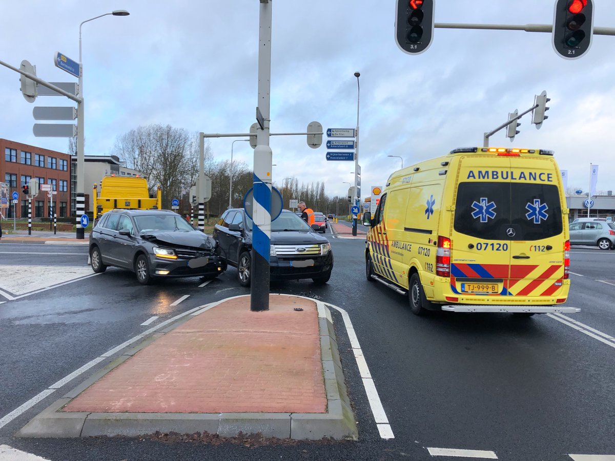 Vanochtend is op de kruising van de Frieswijkstraat en de Amersfoortseweg in Nijkerk een aanrijding geweest tussen twee auto's.