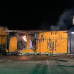 Metershoge vlammen waren maandag op dinsdagnacht te zien vanaf de A28 bij Nijkerk. Het ging om een bouwkeet op een bedrijfsterrein die rond 1 uur in brand stond.