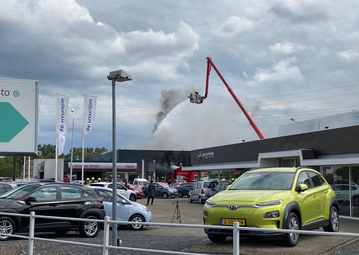 De brand woedde bij Mitsubishi Dealer Kardol aan de Lagelandseweg. De eerste melding kwam rond 14.30 uur bij de meldkamer binnen. Al snel werd er opgeschaald naar 'zeer grote brand'.