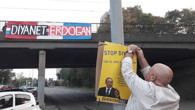 Rond het Jonkerbosplein zijn diverse spandoeken opgehangen en borden geplaatst die de politie snel heeft weggehaald.
