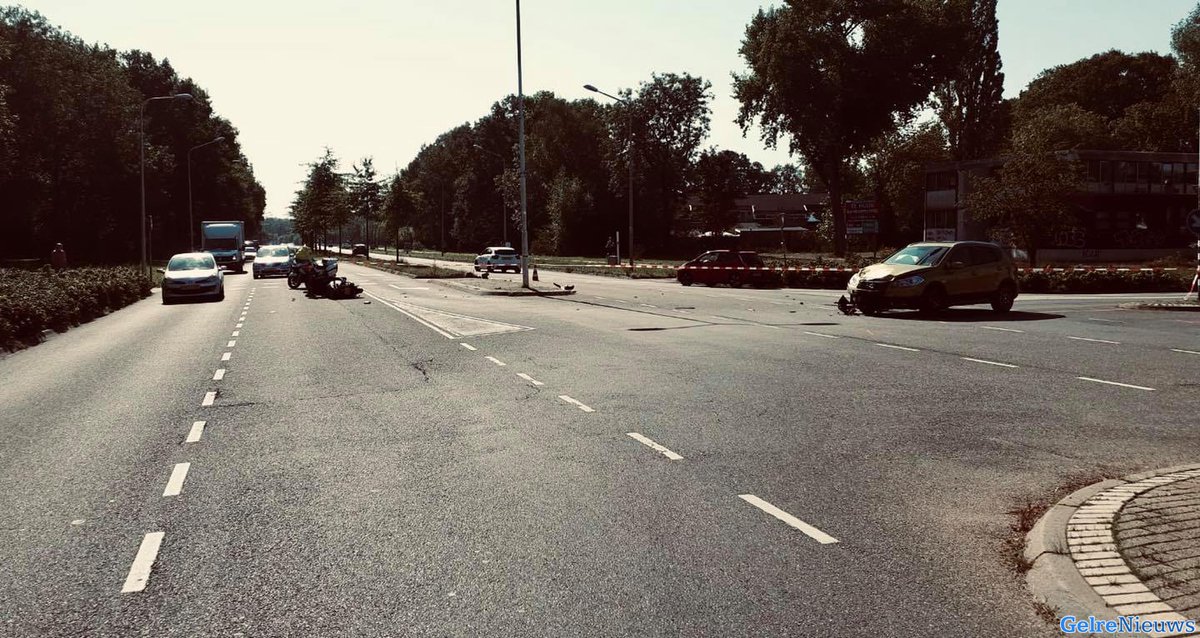 Dat meldt de politie op Facebook. Een motorrijder en een auto kwamen met elkaar in botsing. De motorrijder raakte gewond en is per ambulance overgebracht naar het ziekenhuis. Mogelijk is hij er ernstig aan toe.
