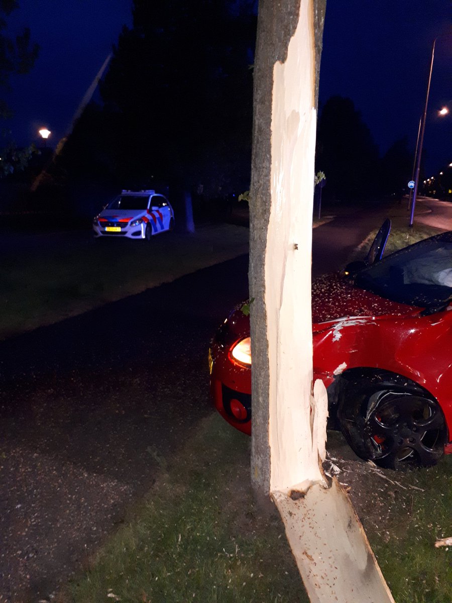 In dit geval alleen schade voor de auto en boom. Wees voorzichtig!.