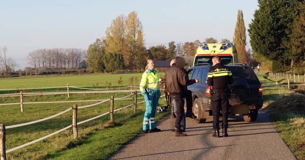 Omstreeks drie uur zondagmiddag haalde een personenauto op de smalle landweg een scooter in. Het is niet bekend of ze elkaar raakten, maar de scooterbestuurder verloor de macht over het stuur en ging onderuit. De boze scooterbestuurder ging verhaal halen bij de automobilist. Het tweetal kreeg ruzie en er vielen enkele rake klappen. De politie onderzoek de vechtpartij en het ongeval. Een bij de scooterrijder achterop zittende jonge vrouw kwam na de val terecht in het weiland langs de weg en raakte gewond. Ze werd ter plekke onderzocht door ambulancepersoneel.
