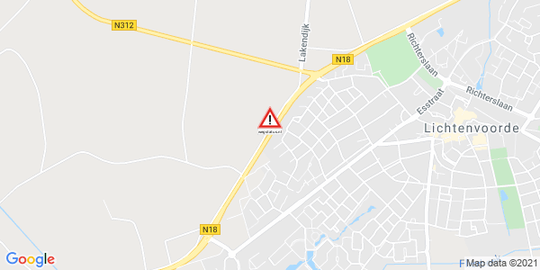 Weg afgesloten: N18 kruising Lichtenvoorde-Zuid <> kruising Zieuwent / N312. Ongeval(len)...