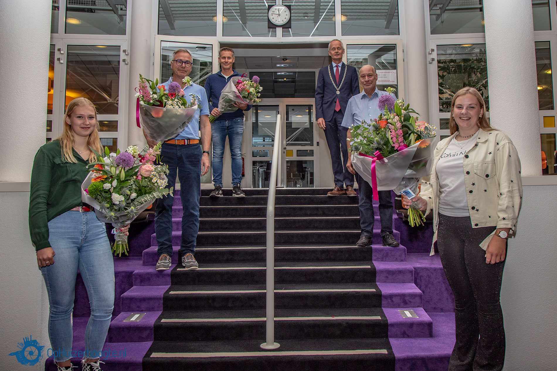 Vanmorgen werden er vijf personen op het gemeentehuis in het zonnetje gezet door burgemeester Niek Meijer.