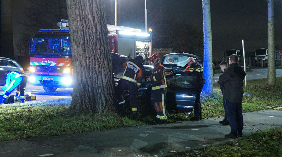 Een inzittende van een auto is zaterdagavond rond 19u45 gewond geraakt na een botsing met een boom en een verkeersbord aan de Nieuwe Gouwe O.Z.