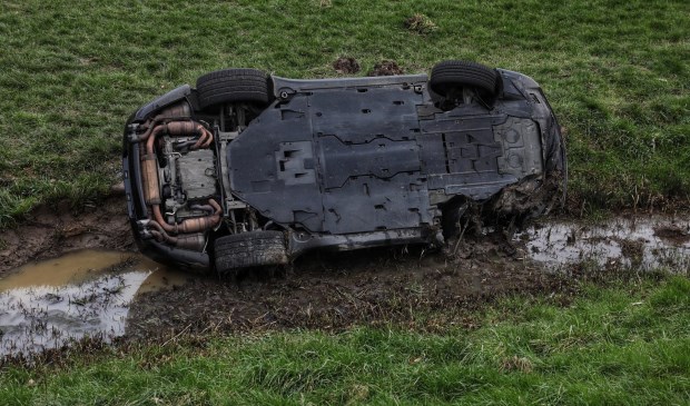 OIJEN | Een auto is zaterdagmiddag op de Parallelweg in Oijen in de sloot gereden.