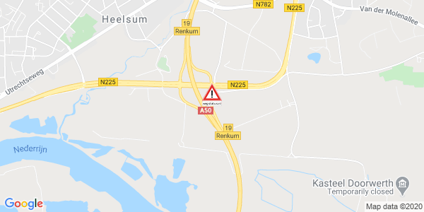 Weg afgesloten: A50 afrit Renkum / N225 (19).