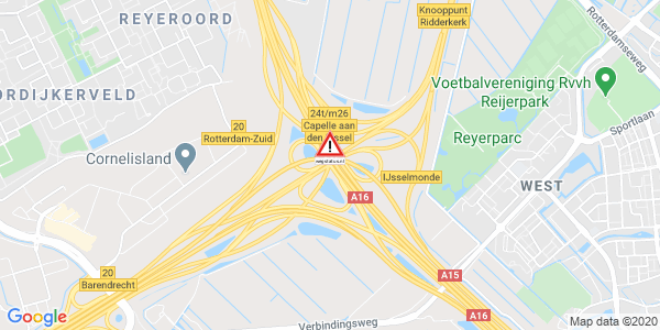 wegstatus: Rijbaanafsluiting: A16 verbindingsweg A16 vanuit Rotterdam / A38 richting Ridderkerk. Ongeval(len)...