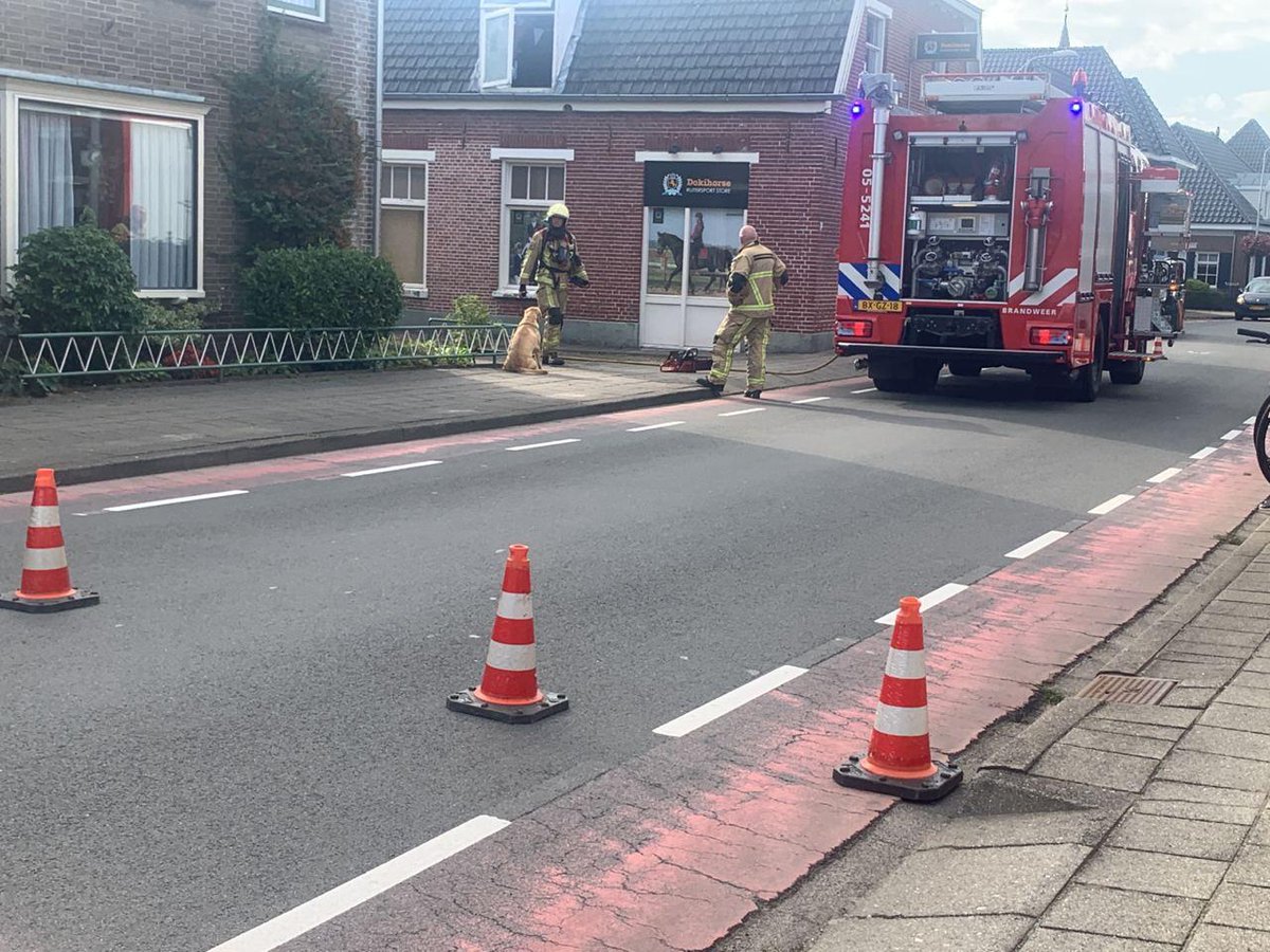 Aan het einde van de middag kreeg de brandweer melding van woningbrand. De brand was uitgebroken boven een paardenwinkel aan de Oranjestraat.