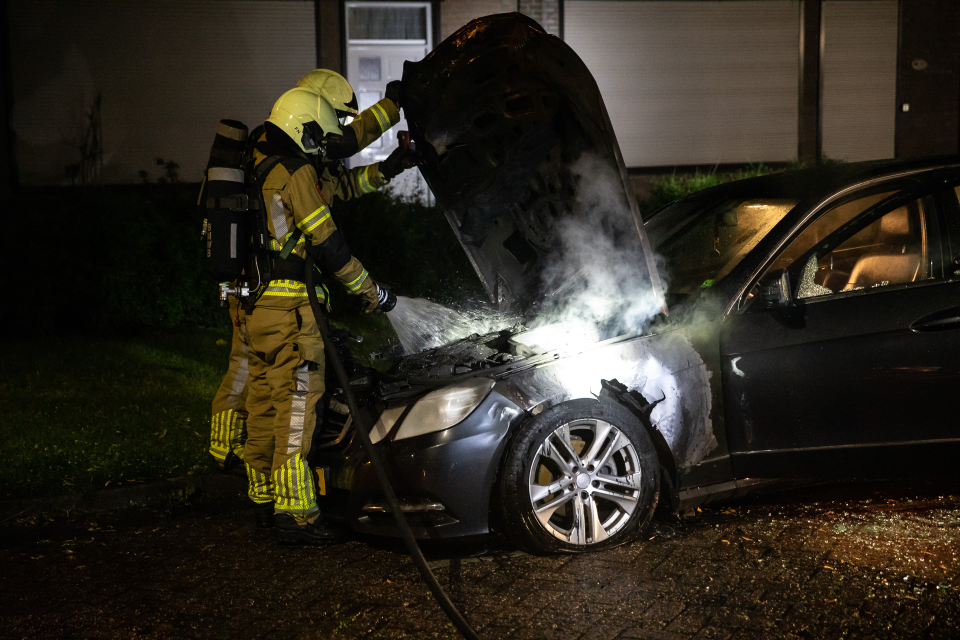 Rond half twee werd de brand gemeld. Op dat moment kwamen de vlammen vooral uit de voorkant van de auto. De brandweer heeft het vuur geblust, maar kon niet voorkomen dat de auto zwaar beschadigd raakte en door een bergingsbedrijf moest worden afgevoerd. De politie doet nu onderzoek na de oorzaak van de brand.