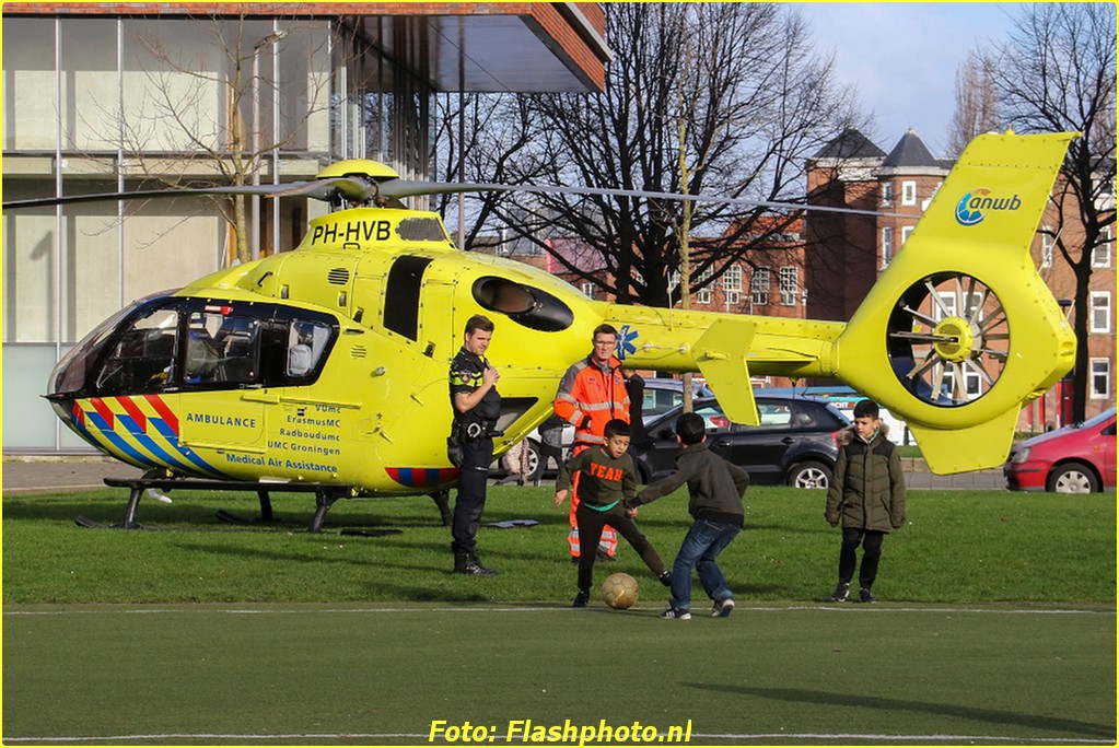 De piloot vond een landingsplek aan De Genestetplein, naast een voetbalveldje. De plaatselijke jeugd had zo een bijzondere toeschouwer voor hun voetbalpotje. De tegenstander kon soms makkelijk scoren omdat de spelers waren afgeleid door het bekijken van de traumahelikopter. Toen de helikopter na enige tijd weer vertrok moest het potje toch even onderbroken worden voor de veiligheid. De jeugd kon daarna al snel weer verder voetballen.