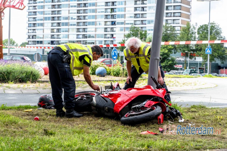 Een motorrijder is bij de rotonde de macht over het stuur verloren en tegen een lantaarnpaal tot stilstand gekomen. De man raakte hierbij zwaargewond. Omstanders hebben eerste hulp verleend, waarna het ambulancepersoneel het daarna overnamen. Het traumateam werd ingezet om het ambulancepersoneel te ondersteunen. Het slachtoffer werd vervolgens per ambulance naar het ziekenhuis overgebracht.