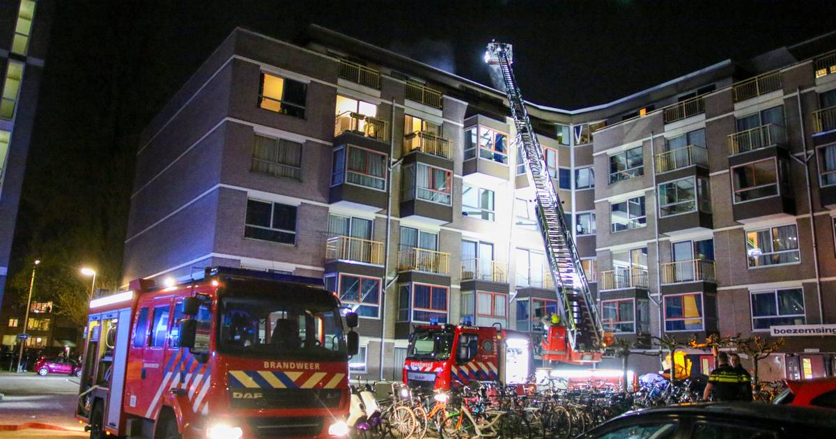 Het pand moest ontruimd worden. Het vuur is inmiddels onder kontrole..