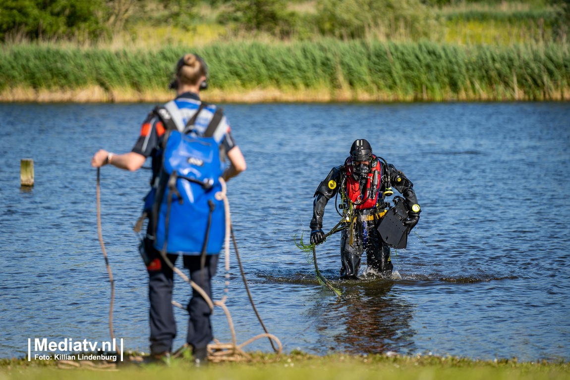 Hulpdiensten waaronder het mobiel medisch team, meerdere duikteams van de brandweer en de politieheli zijn donderdagmiddag uitgerukt na een melding van een persoon te water in een plas aan de Kandelaarweg in Rotterdam.