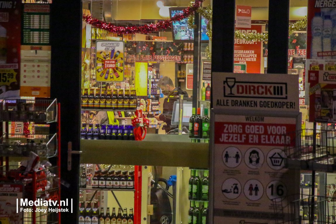Marinus Bolkplein Rotterdam : Een nog onbekende man heeft zojuist een filiaal van slijterij Dirck iii overvallen, de politie doet onderzoek.