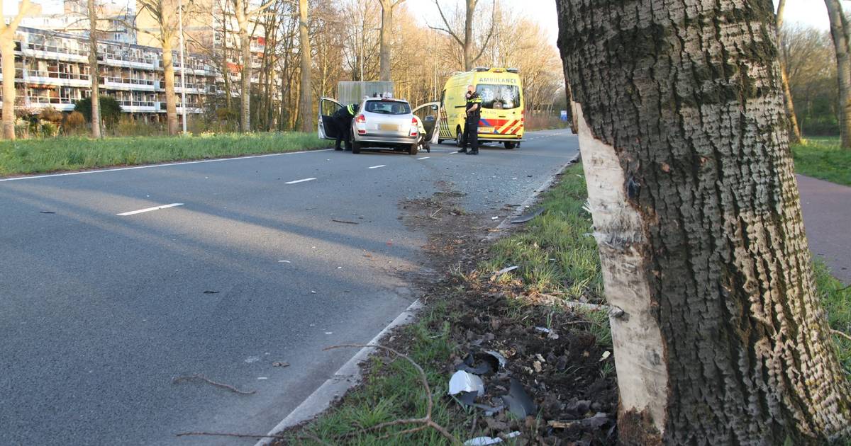 De bestuurster reed tegen een boom en kwam verder op de weg tot stilstand.