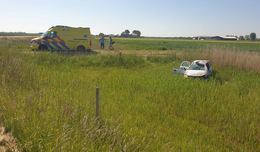 Een automobilist reed bij een flauwe bocht rechtdoor, kwam in de berm en sloeg tenminste één keer over de kop. De auto kwam in het veld stil te staan. Een man en een vrouw zijn naar het ziekenhuis gebracht.