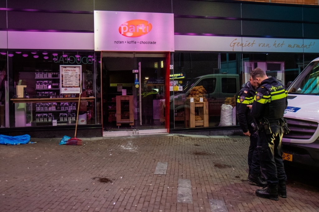 Schiedam - Maandagochtend rond 7:30 uur is notenwinkel Parti op de Hoogstraat overvallen. Hierbij is de glazen deur gesneuveld.